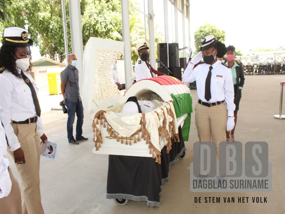 De uitvaardienst van de 33-jarige douanier, Daphne Hoft, heeft afgelopen dinsdag plaatsgevonden. Collega’s, families en vrienden konden hierbij afscheid nemen in het Politie Opleidingscentrum. Hoft is op 20 juni doodgeschoten door haar 35-jarige levenspartner Afton Plein. Zij zat in het bondsbestuur van de douane, maar heeft ook een termijn gediend bij de Surinaamse Bodybuilding- & Weightliftingbond (SBWB). (tekst: FR – foto: Regilio Derby)