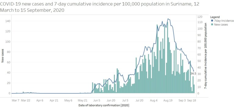 Het ministerie van Volksgezondheid belegt deze week geen Covid-19 persconferentie. Om de gemeenschap toch te voorzien van de nodige informatie is een korte samenvatting gemaakt van de huidige Covid-situatie in het land, zo bericht de Communicatie Dienst Suriname zaterdag 19 september.
