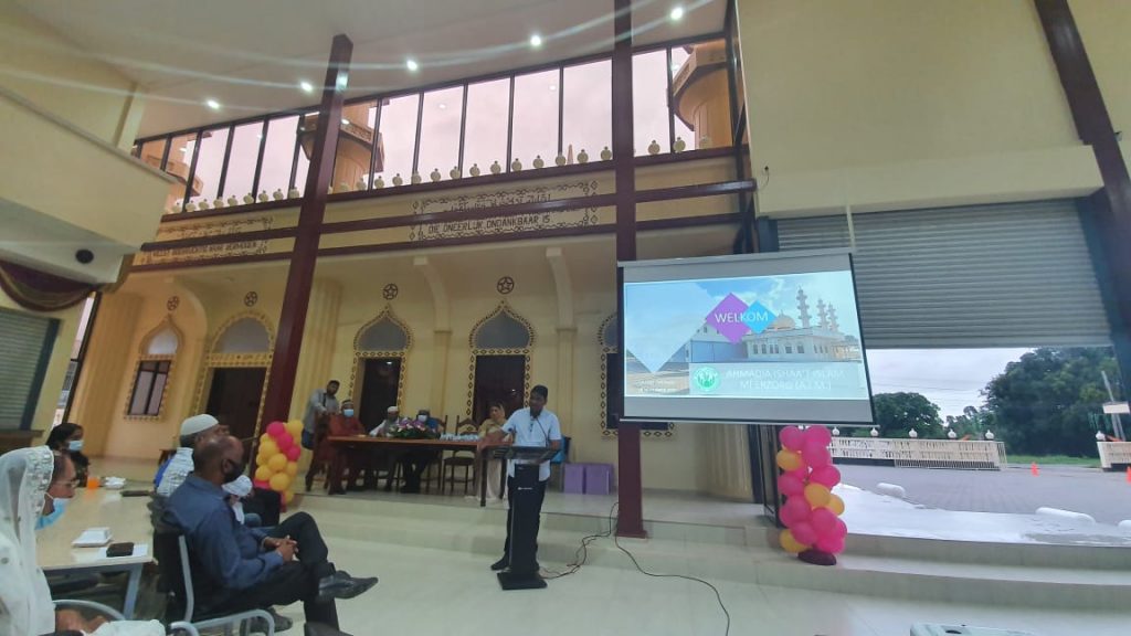 De multifunctionele hal van de islamitische organisatie Ahmadia Anjuman Isha’at Islam Meerzorg is afgelopen zaterdag wederom in gebruik genomen. De hal is geheel opnieuw opgetrokken. Het is gelegen naast de moskee van de islamitische organisatie te Weg naar Peperpot nummer 55. Tijdens de grand heropening waren onder anderen de burgervader van het district, Mohamedshafiek Radjab, en VHP-parlementariër van het district Roy Mohan, samen met vele leden van de organisatie aanwezig. Diverse religieuze organisaties waren ook uitgenodigd. Het programma begon met recitatie uit de heilige Qur’an, gevolgd door felicitatieboodschappen. Het geheel werd gedaan onder navolging van de covid-19 protocollen.