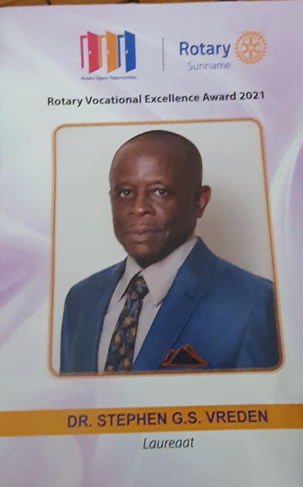 De Rotary Club of Paramaribo Residence heeft donderdag 29 april dr. Stephen in het zonnetje gezet. Hij ontving de Rotary Vocational Ecellence Award.