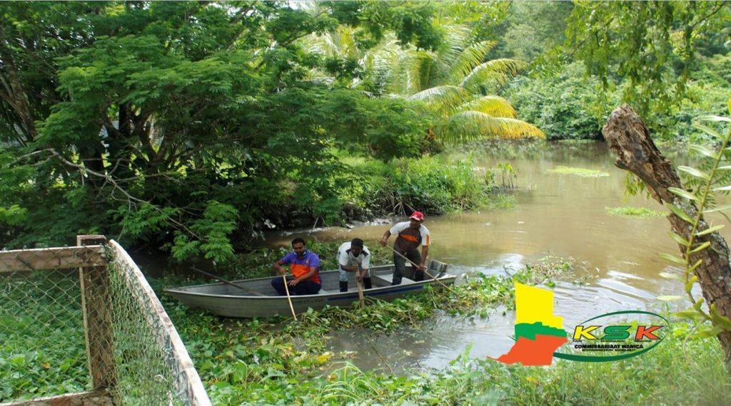 De regering, en dan met name het ministerie van Openbare Werken (OW), is deze dagen landelijk druk in de weer met het oplossen van diverse problemen veroorzaakt door wateroverlast. Zo worden onder andere in het district Wanica allerlei kanalen en trenzen opgeschoond, waardoor water weer door kan stromen.