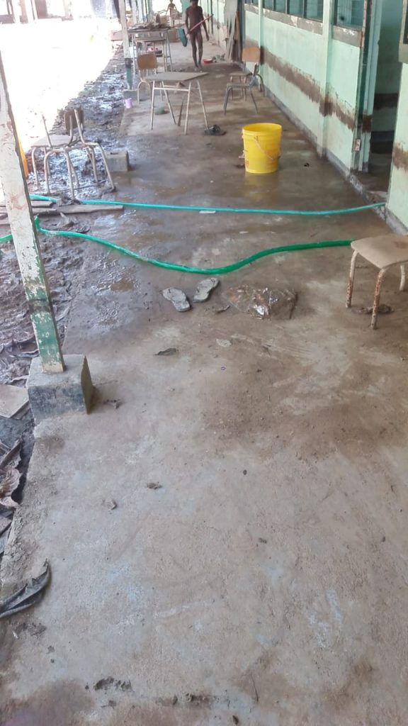 Informatie die de redactie van Dagblad Suriname heeft bereikt is, dat tot de dag van vandaag niemand van de overheid op de school is geweest om te kijken wat de schade is en te inventariseren om eventueel zaken aan te pakken.