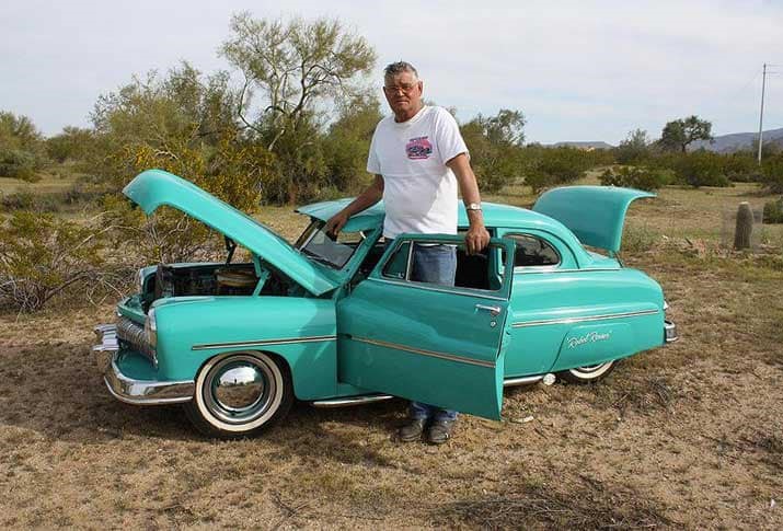 Ernie Adams, 82, wijd en zijd in de VS bekend om zijn dwergrods, heeft een mooie verzameling auto’s, te beginnen met een Ford uit ’42 en een Mercury uit ’49. Maar, het zijn verkleinde klassiekers. Ja, Adams bouwt auto’s die miniatuurmodellen zijn van het echte werk in zijn winkel/museum buiten Phoenix, in Maricopa, Arizona.