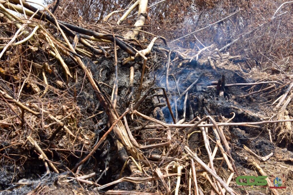 Luitenant Gillio Komproe van het NCCR zegt dat het vuur diep in de humuslaag blijft smeulen, wat veel rook veroorzaakt. “Ook al is de bovenlaag nat, blijft het langzaam doorbranden.”