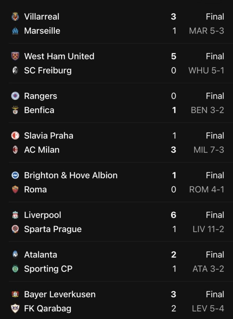 De opmerkelijke prestaties van individuele spelers zoals Mohammed Kudus van West Ham en de dubbele doelpunten van Patrik Schick voor Leverkusen werden bijzonder belicht. Ondanks een sterke comeback bleek de inspanning van Brighton tegen Roma niet genoeg om de grote achterstand uit de heenwedstrijd te overbruggen.