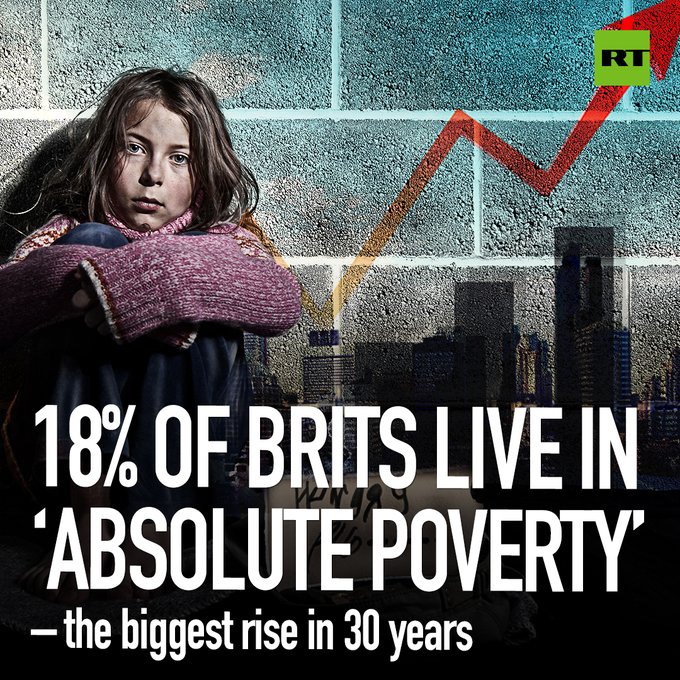 De Britse regering maakte bekend dat de armoede het snelst toeneemt sinds de jaren negentig en dat een vijfde van het land in absolute armoede leeft. Maar dat is oké, want zonder de overheid zou dat percentage hoger zijn geweest. Nee, dat zeiden ze echt.