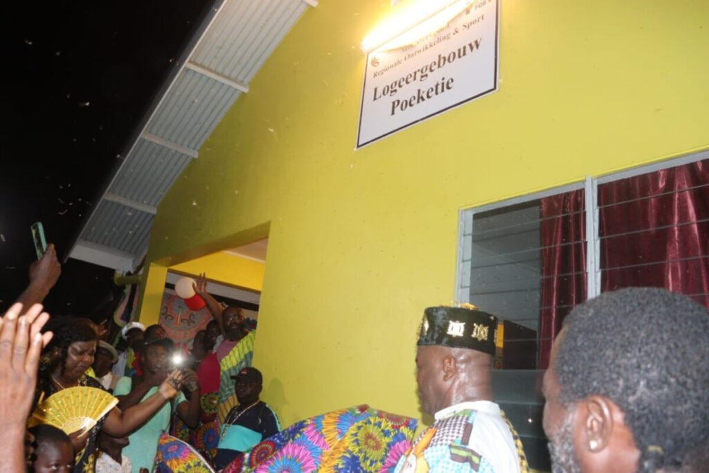 De bewoners van het dorp Poeketie te Sipaliwini zijn bizonder blij met het nieuwe logeergebouw dat zaterdagavond 13 april in gebruik is genomen door waarnemend president Ronnie Brunswijk met de onthulling van een naambord. Ook waren minister Gracia Emanuël van Regionale Ontwikkeling en Sport (ROS) en Assembleevoorzitter Marinus Bee aanwezig.