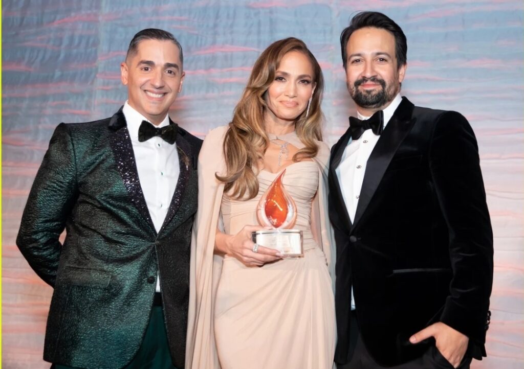 Jennifer en Lin poseerden met Frankie Miranda, president en CEO van de Hispanic Federation. Matt, die op het evenement presenteerde, werd vergezeld door zijn vrouw Luciana.