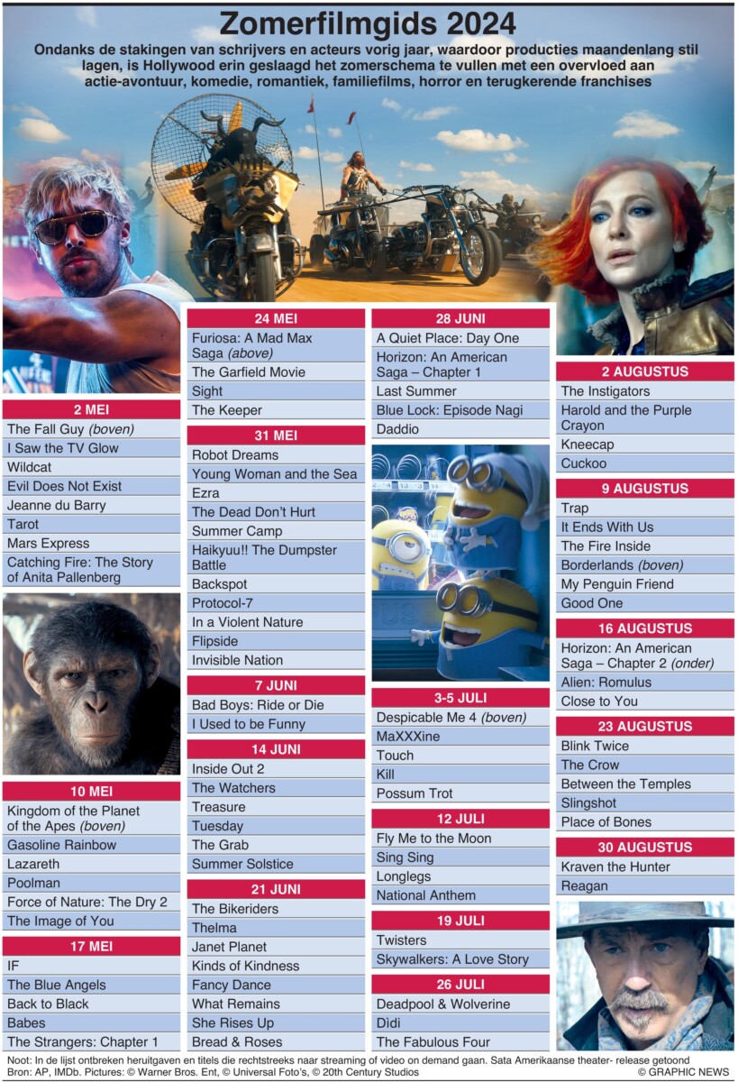 April 26, 2024 – Ondanks de stakingen van schrijvers en acteurs van vorig jaar, waardoor producties maandenlang stil lagen, is Hollywood erin geslaagd het zomerprogramma te vullen met een enorme oogst aan actie-avontuur, komedie, romantiek, familiefilms, horror en terugkerende franchises