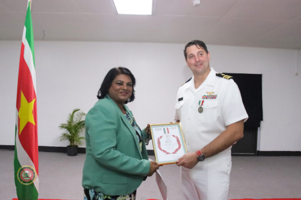 De diensttijd in Suriname van Lieutenant Commander Nathaniel Swank, Military Liaison Officer van de VS, is ten einde. Hij is vorige week door minister Krishna Mathoera van Defensie gedecoreerd met de medaille voor speciale verdiensten in de rang van commandeur.