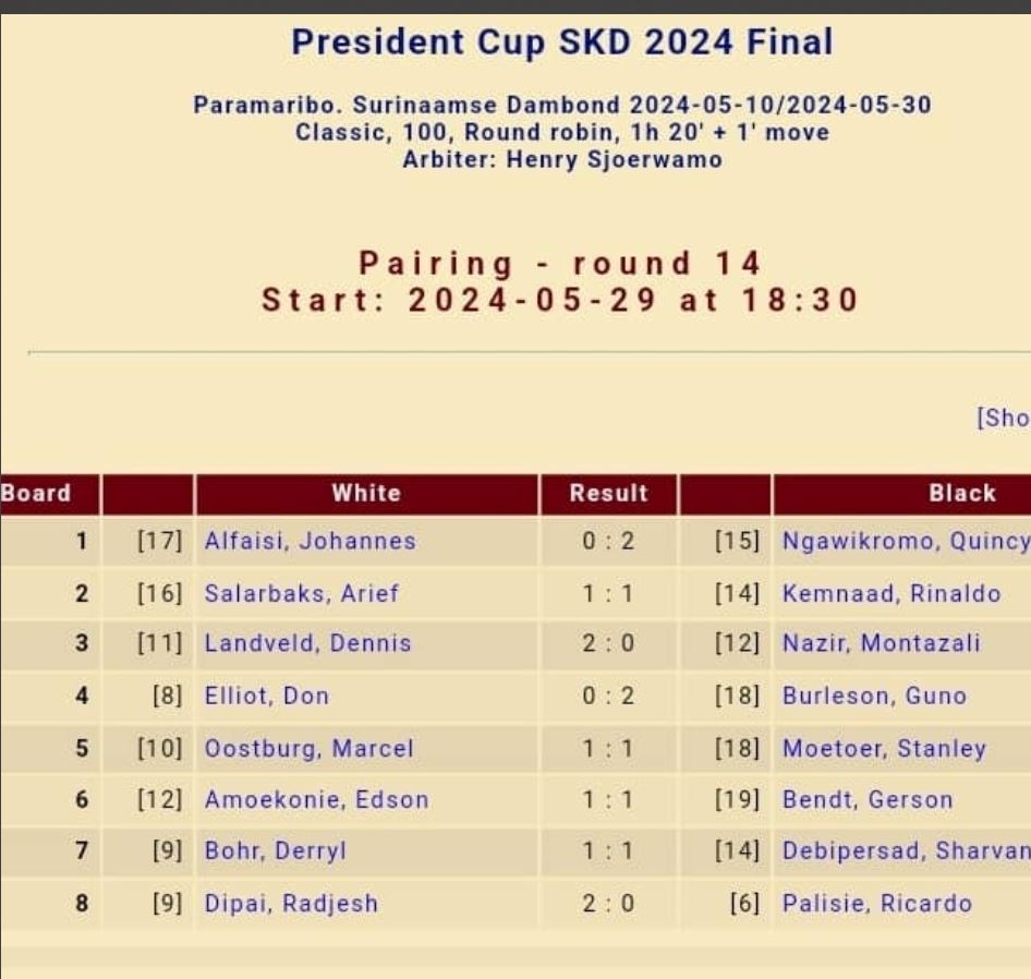 Bendt bleef steken in een remise tegen Edson Amoekonie. Het belooft een spannende eindstrijd te worden tussen Burleson en Bendt om het kampioenschap op de laatste wedstrijddag.