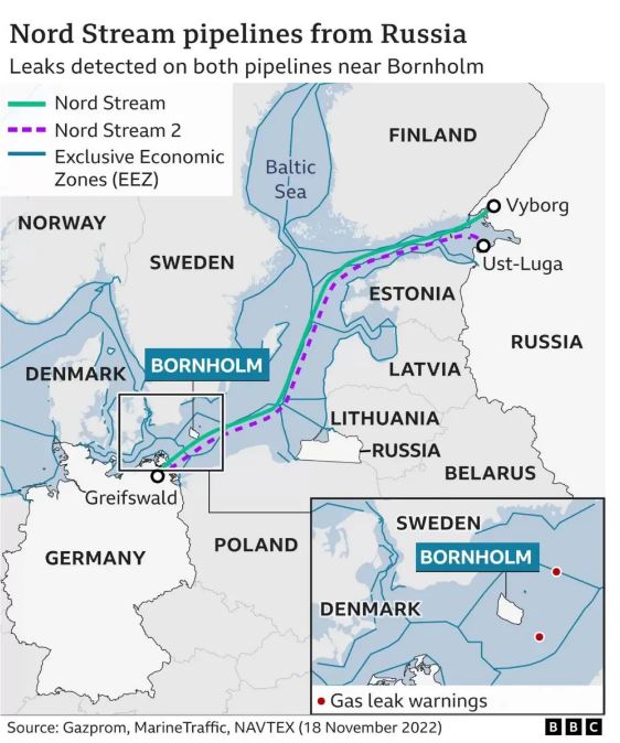 Duitse staatsaanklagers hebben een arrestatiebevel uitgevaardigd voor de Oekraïense duikinstructeur, Volodymyr Z, in verband met de sabotage van de Nord Stream-gasleidingen in september 2022. Drie leidingen werden opgeblazen door geplaatste explosieven vanuit een gehuurd Duits jacht. De verdachte had Polen al verlaten voor Oekraïne toen de Poolse autoriteiten hem begin juli wilden arresteren. Duitse media suggereren betrokkenheid van andere Oekraïense duikers. Er is echter geen bewijs dat de aanval direct door de Oekraïense of Russische staat is bevolen, ondanks complottheorieën over de rollen van Kiev, Moskou en Washington. De Nord Stream-lijnen symboliseren de voormalige energieafhankelijkheid van Europa van Rusland.