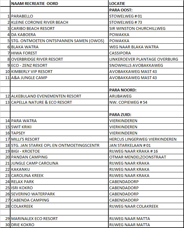 Inmiddels hebben 30 exploitanten van recreatieoorden in het district Para toestemming en goedkeuring ontvangen om te opereren van het lokale commissariaat. âDeze oorden zijn door het traject van controle op naleving van de geldende voorwaarden gegaan en er is voldoende bewezen dat zij de veiligheid van hun bezoekers kunnen waarborgenâ, aldus het Burger Informatie Centrum Para.