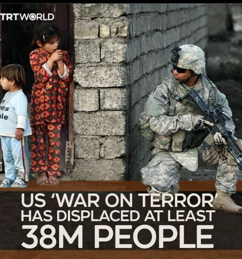 Sinds de VS hun “Global War on Terror” lanceerden na de aanslagen van 11 september 2001, zijn miljoenen wereldwijd getroffen. Conservatieve schattingen geven aan dat 38 miljoen mensen ontheemd zijn geraakt in de landen waar de VS oorlog heeft gevoerd, met een mogelijke stijging tot 59 miljoen. Deze langdurige en verwoestende conflicten hebben wereldwijd talloze levens ontwricht en immense menselijke en materiële schade veroorzaakt.
