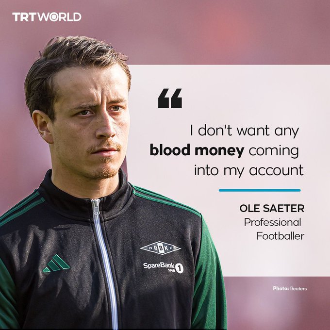 De 28-jarige Noorse spits Ole Saeter heeft een overstap naar de Israëlische club Maccabi Haifa afgewezen, ondanks de financiële zekerheid die het zou bieden. Saeter verklaarde: “Ik wil geen bloedgeld op mijn rekening zien. Dat zou een nachtmerrie zijn.” Hij kon zich niet vinden in de waarden en acties van Israël. Volgens rapporten heeft Israël in hun 11 maanden durende aanval op Gaza meer dan 41.000 mensen gedood en meer dan 95.000 verwond.