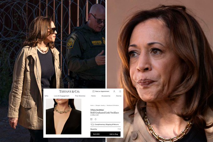 Kamala Harris, Democratische presidentskandidaat en ‘grens-tsaar’, kreeg kritiek voor het dragen van een ketting ter waarde van $ 62.000 tijdens een bezoek aan de zuidelijke grens in Arizona. Harris, 59, droeg de ketting terwijl ze langs een hek met scheermesdraad in Douglas liep, pratend met een agent van de Amerikaanse grenspatrouille. Critici vonden haar uiterlijk ongepast en verwezen naar de ketting van Tiffany’s als een symbool van disconnectie met de middenklasse.