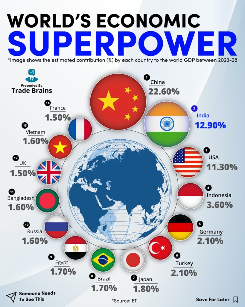 Na de USA, China en Duitsland was India de 4de grootste economie in de wereld.