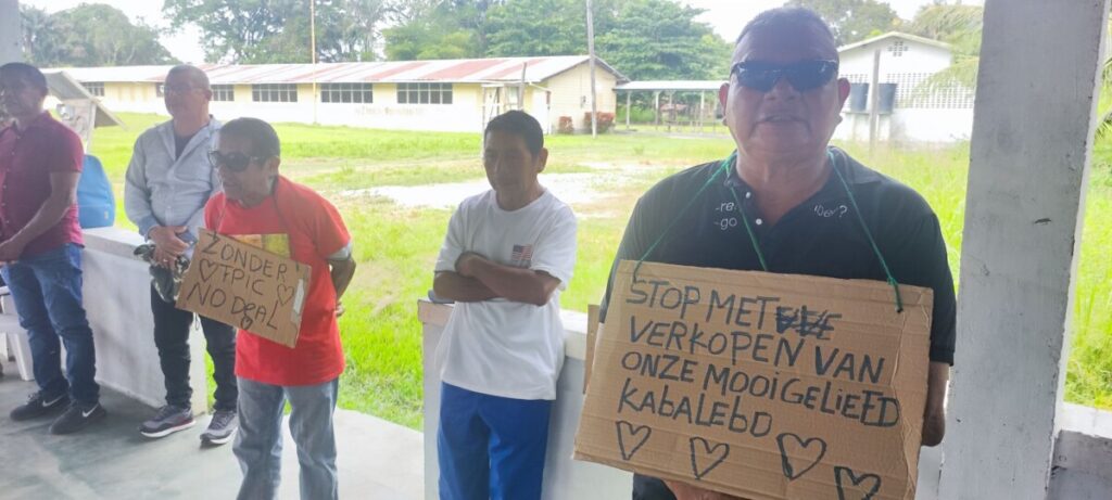 De 3 dorpsbesturen van Section, Apoera en Washobo begonnen vanmiddag, maandag 24 februari, om drie uur met een vreedzaam protest om kracht kracht bij te zetten aan hun collectief besluit: ‘๐ก๐ฒ๐ฒ ๐ง๐ฒ๐ด๐ฒ๐ป ๐๐ต๐ถ๐ป๐ฎ๐น๐ฐ๐ผ ๐ฑ๐ฒ๐ฎ๐น’.