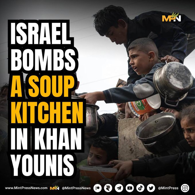 Te midden van de dreigende hongersnood in de Gazastrook, vanwege de totale blokkade van het gebied door Israël, besloot het bezettingsleger een gaarkeuken in Khan Younis aan te vallen met een luchtaanval, waarbij burgers werden vermoord die zich verzamelden voor voedsel.