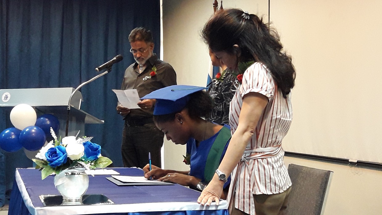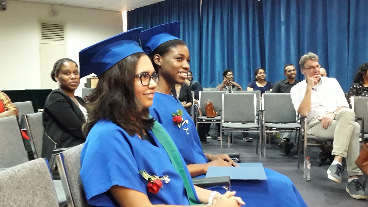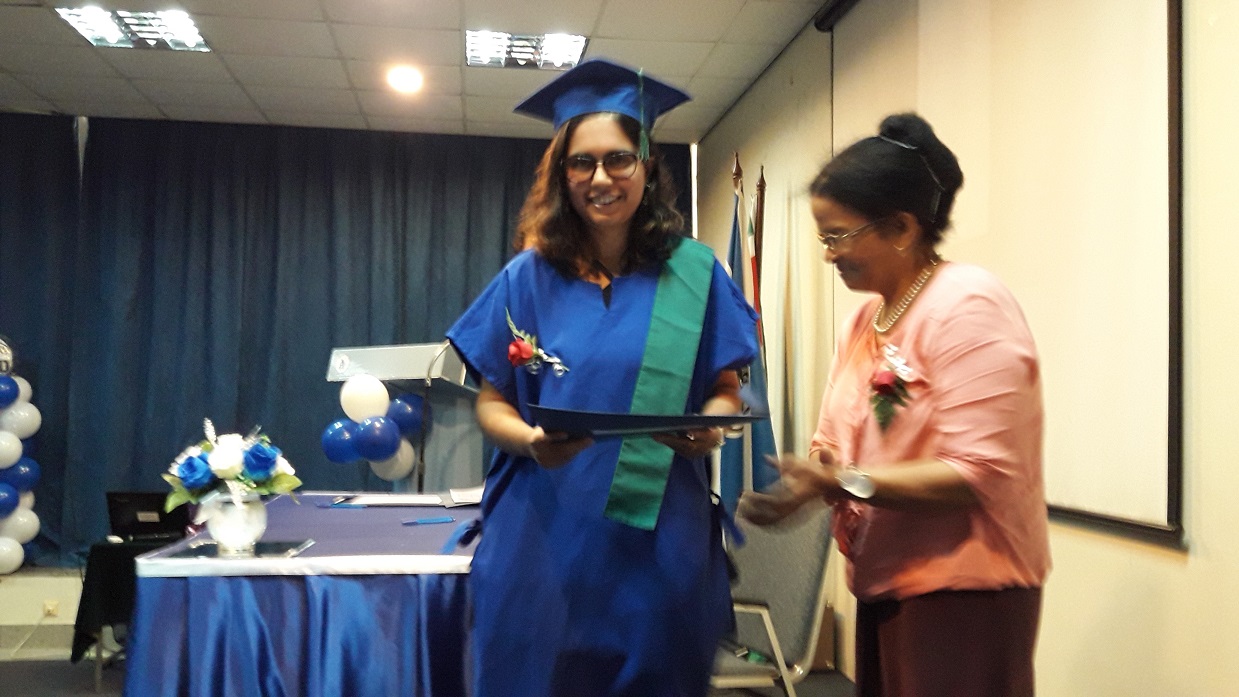 Eerste Buluitreiking Wis en Natuurkundige Wetenschappen (1)De Faculteit der Wis- en Natuurkundige Wetenschappen aan de Anton de Kom Universiteit van Suriname (Adekus) heeft op 4 januari 2019 haar eerste diploma’s uitgereikt. Tijdens een formele bijeenkomst in het University Guesthouse aan de Leysweg hebben de studenten Shruti Somai en Darrey-Ann Louisville hun bul in ontvangt mogen nemen. Bij wiskunde zijn er twee afgestudeerden. De tweede student was uitlanding. Somai (wiskundige) en Louisville (scheikundige) hebben beiden hun studies binnen drie jaren afgerond. Als een van de eerste afgestudeerden van beide studierichtingen hebben beiden hun ervaringen meegedeeld.
