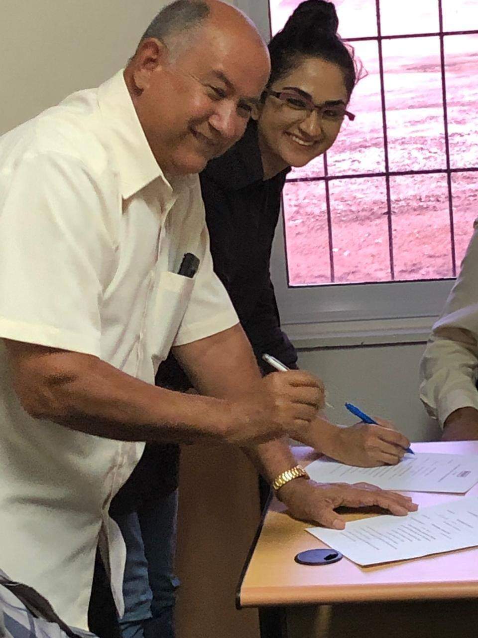Kenneth Donk (links) en Hanisha Jairam (rechts) zondag op de NDP-vergadering. (Foto: Facebookpagina NDP)Ondanks grote tegenstand vanuit de achterban van De Nationale Democratische Partij (NDP) de afgelopen maanden in Nickerie, is het partijvoorzitter Desi Bouterse uiteindelijk toch gelukt om Hanisha Jairam en Kenneth Donk te plaatsen als de twee hoofdbestuursleden van de paarse partij in het rijstdistrict. Dagblad Suriname berichtte in november 2018 dat er toen al pogingen werden ondernomen om voornoemde personen te plaatsen als hoofdbestuursleden. Door verzet vanuit de achterban en enkele toppers mislukte deze poging van ondervoorzitter Ramon Abrahams. Interventie van Bouterse zorgde afgelopen zondag uiteindelijk toch ervoor dat de gelederen werden gesloten en consensuslijsten in alle vijf ressorten werden ingediend. Hierdoor hoefden de verkiezingen voor de subafdelingen niet voor de tweede keer te hoeven worden uitgesteld. Roy Dalloesingh wordt door Edgar van Genderen vervangen als afdelingsvoorzitter. Subafdelingen
