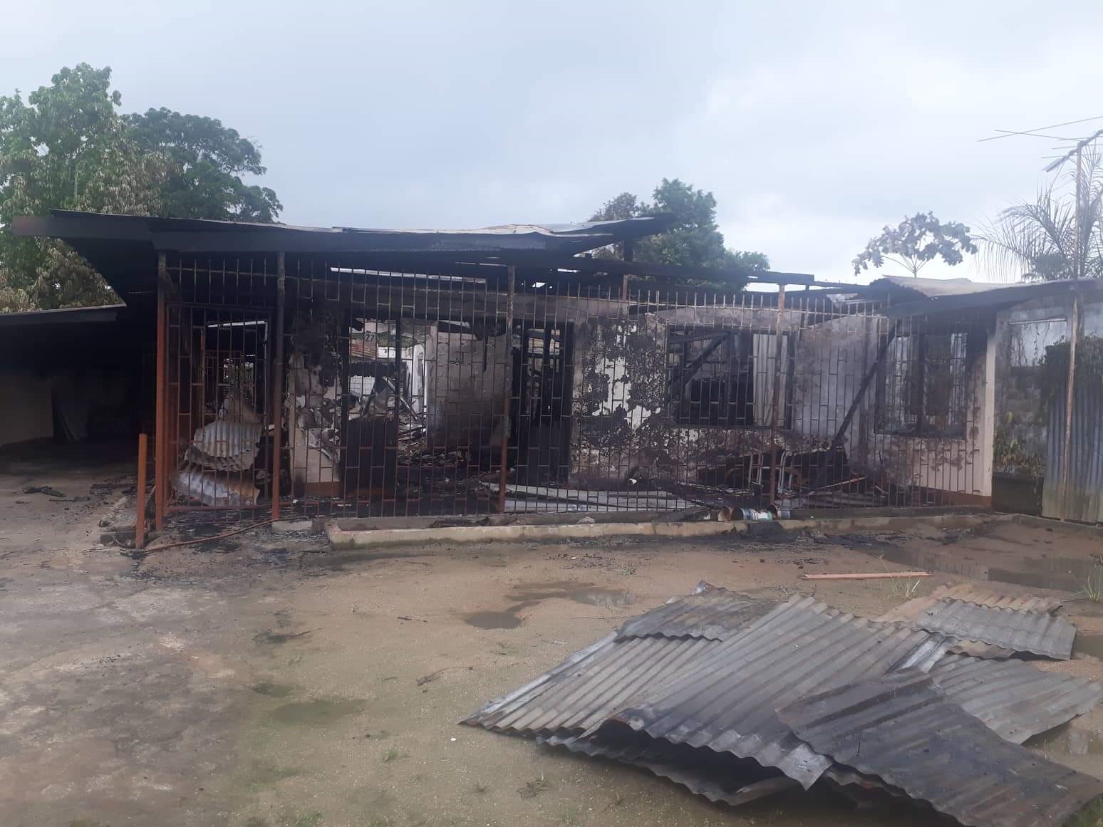 Vijf woningen aan de Carthagoweg, een zijstraat van de Santodorpweg, zijn in de nacht van zaterdag op zondag 13 januari geheel in de as gelegd. Brandweervoorlichter Olton Pinas zegt dat deze woningen allemaal op een adres zijn gevestigd, dus aaneensluitend. Naar zeggen van de getuigen is de brand bij de eerste woning begonnen. Deze melding kwam binnen omstreeks 01.06 uur en de brand was omstreeks 01.55 uur onder controle. De brandweer was binnen 12 minuten ter plaatse zegt Pinas. Het gaat in deze om laagbouwwoningen. Eén van de bewoners liep op dat moment naar voren en zag tot zijn schrik vlammen in de vliering van de eerste woning. In dat bedoeld huis waren zes personen aanwezig. Zij waren allemaal in diepe rust. Pinas zegt dat het eerste huis wel tegen brand is verzekerd en ook aangesloten op het elektriciteitsnet. Vermoedelijk tapten de andere vier huizen stroom van dit huis. De brandweer heeft drie gascilinders verwijderd uit de woningen en omstanders hadden reeds twee weggehaald uit de panden. Er hebben zich geen persoonlijke ongelukken voorgedaan.