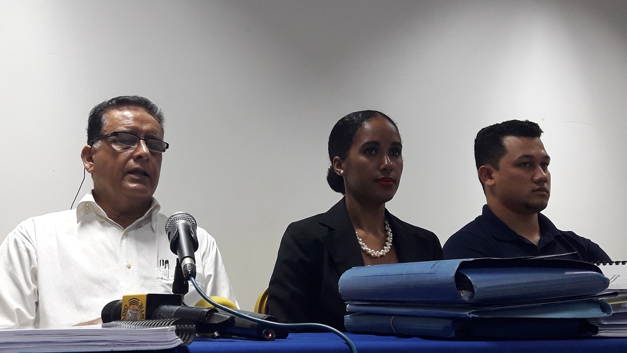 Vlnr. Perry van Leesten, (Hydrocom), Serena Essed (advocaat) en Jason Bakker (Boerencollectief) (foto: Kavish Ganesh)