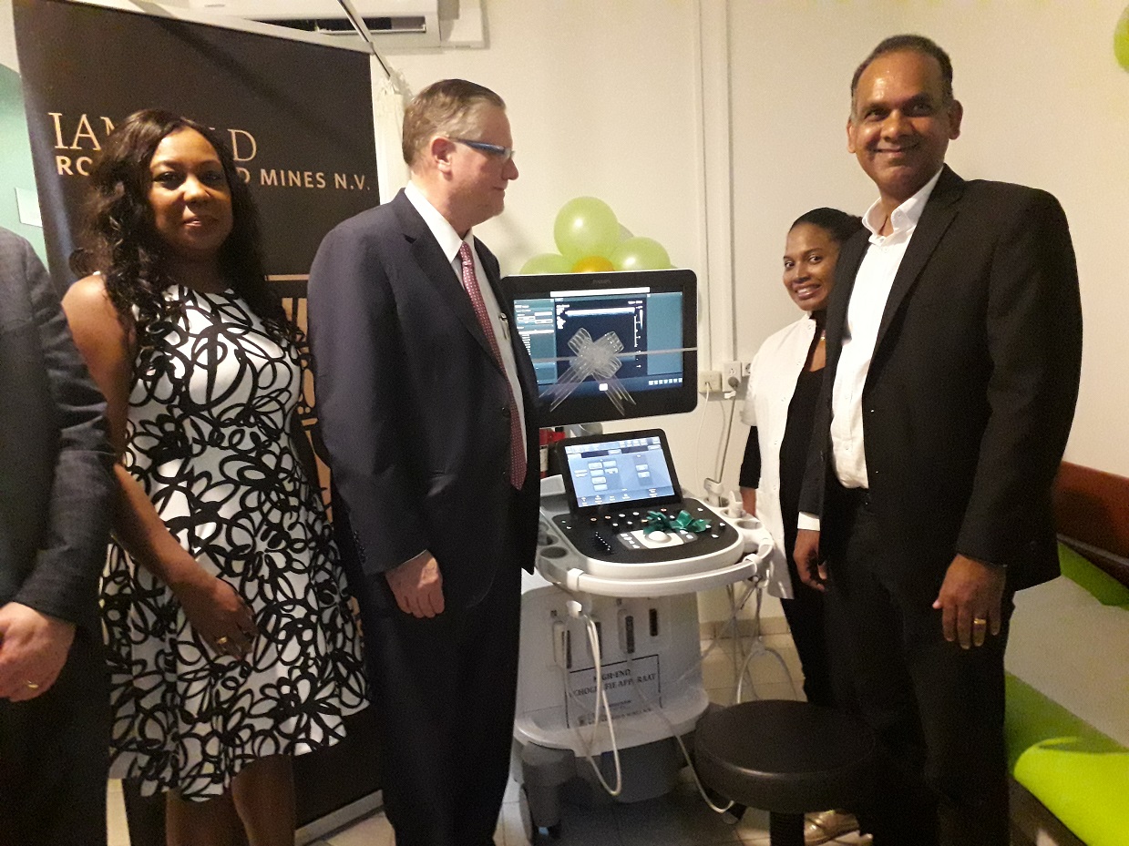 IAMGOLD schenkt echoapparaat aan  afdeling Radiologie AZPDe afdeling Radiologie van het Academisch Ziekenhuis Paramaribo (AZP) heeft donderdag een gloednieuw echoapparaat in gebruik genomen. Het betreft een schenking door Iamgold Rosebel Gold Mines NV. Met zo een apparaat kan de interne werking van bijvoorbeeld de nieren, spieren en het hart bekeken worden. Ook komt een echo goed te pas bij een zwangerschap. Doordat de geluidsgolven niet door de botten heen kunnen, wordt er geen schade aangericht aan het lichaam. Naar de medische sector toe heeft Iamgold vaker haar maatschappelijke betrokkenheid getoond. Zo heeft dit goudwinningsbedrijf in het afgelopen jaar circa USD 1 miljoen geïnvesteerd in deze sector. In het laatste kwartaal van 2018 heeft Suriname Eye Care Center van AZP een aanvang gemaakt met de rehabilitatie van dit gebouw, mede dankzij de donatie van Iamgold ter waarde van USD 250.000.