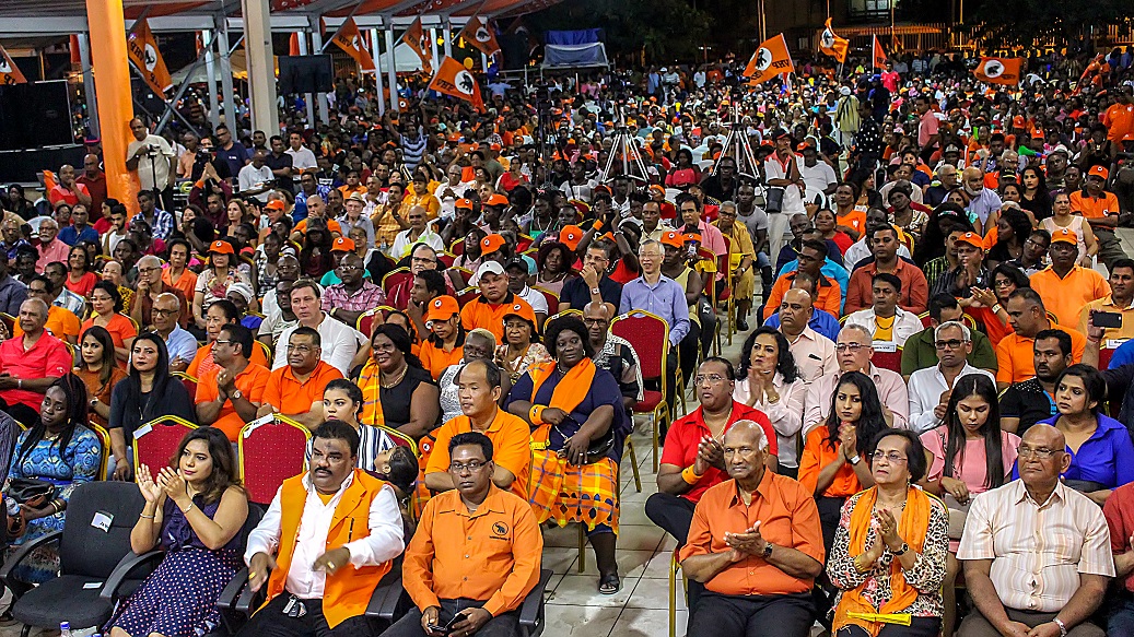 Asiskumar Gajadien, ondervoorzitter van de VHP, vergeleek de huidige situatie in het land met die van de jaren ’80. “Er zijn veel overeenkomsten met de jaren ’80. Toen had je militaire dictatuur, nu heb je democratische dictatuur met pionnen, bejaarden en vriendjes rondom de regering. In de jaren ’80 steeg de koers bijna elke dag, nu stijgt het ook, alleen wat langzamer. Prijzen in de winkels stegen, dat is nu ook het geval. Toen werden er pakketten verdeeld via overheidsorganen, nu verdelen NDP-structuren de pakketten”, gaf Gajadien aan. Ook Dew Sharman en Mahinder Jogi, parlementariërs van de oranje partij, spraken over de slechte situatie in het land. Volgens Gajadien heeft de VHP-familie met de grote opkomst bewezen dat er redding van het land op komst is. “Er is geen andere keus, alleen de VHP kan redding brengen.” Harriete Ramdien uit Nickerie zei verzekerd te zijn dat de VHP niet 4, maar alle 5 zetels in Nickerie zal pakken. Uit Nickerie alleen waren er ruim 80 bussen naar de stad afgereisd. “De president en vicepresident zijn naar Nickerie gekomen vorige week. Maar wat hebben ze gedaan voor ons district? Is de haven afgebouwd, is het gerechtsgebouw afgebouwd, kunnen kinderen uit het district zonder problemen studeren in Paramaribo?”, vroeg ze zich af.