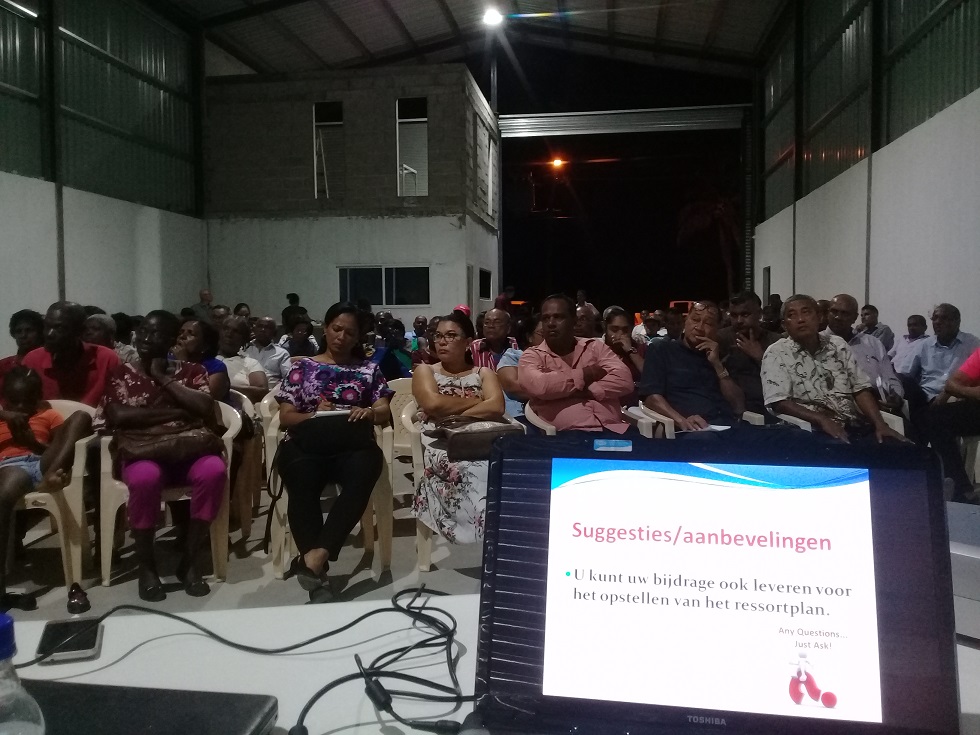 In zijn presentatie heeft RR Houttuin ook aangegeven dat de 3 prioriteitsprojecten die geselecteerd waren voor het dienstjaar 2018, niet uitgevoerd zijn. Deze waren het betegelen van de wegen rond de RGD-poli Houttuin en plaatsen van duikers langs de trens van de poli om zo meer parkeergelegenheid te hebben. Een ander project was het aanleggen van minivoetbalvelden in de gebieden Vredenburg, Dijkveld en Maretraite Project. En als derde prioriteit was aangegeven een grote renovatie van de sluis te Tout Lui Faut en het plaatsen van een beheerder voor de sluis. Doordat deze projecten niet uitgevoerd zijn, verliezen de ressortraad en ook de burgerij haar vertrouwen in de regering. “Jullie maken zulke mooie plannen en ze worden niet uitgevoerd. Wat doen jullie eraan? Kan er geen evaluatie per kwartaal of halfjaarlijks plaatsvinden van de plannen”, haalde een dame aan.