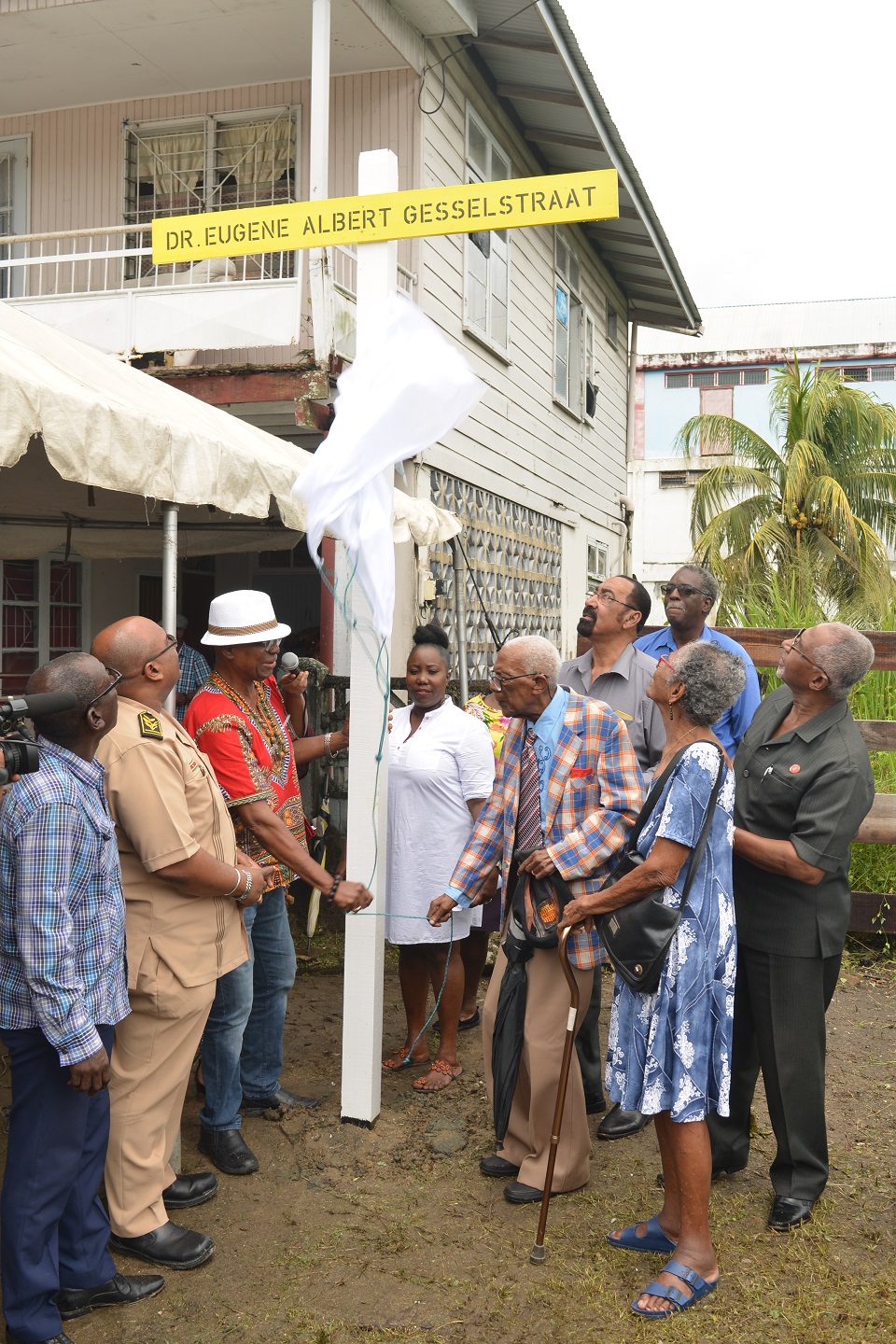 Vrijdag 1 februari 2019 is Dag der Herschrijving van de Historie voor Suriname. Ter herdenking van 145 jaar Hindoestaanse Immigratie, 155 jaar Keti Koti en 165 jaar Chinese Immigratie werd het naambord, in het kader van de naamsverandering Hoogestraat naar de Dr. Eugene Albert Gesselstraat, onthuld. In het kader van de 100ste geboortedag van de historicus en politiek analist, dr. Eugene Albert Gessels, bekend als Oom Sjenie, werd hij vereeuwigd door president Desi Bouterse. De president heeft dit gedaan op advies van de Nationale Commissie der Herdenking. Deze onthulling werd bijgewoond door verschillende prominenten, zoals de dc van Noord-Oost, de directeur van het kabinet van de president, die namens de president aanwezig was, en de voorzitter van de Nationale Commissie der Herdenking. Voor Eugène Gessel is het een waardering en erkenning van het land. Hij zei dat de Hoogestraat ook zijn geboortestraat is. Hij zei dat hij zich nog goed kan heugen toen hij dag en nacht moest werken aan de eigen Grondwet van Suriname kort voor de onafhankelijkheid van Suriname in 1975.