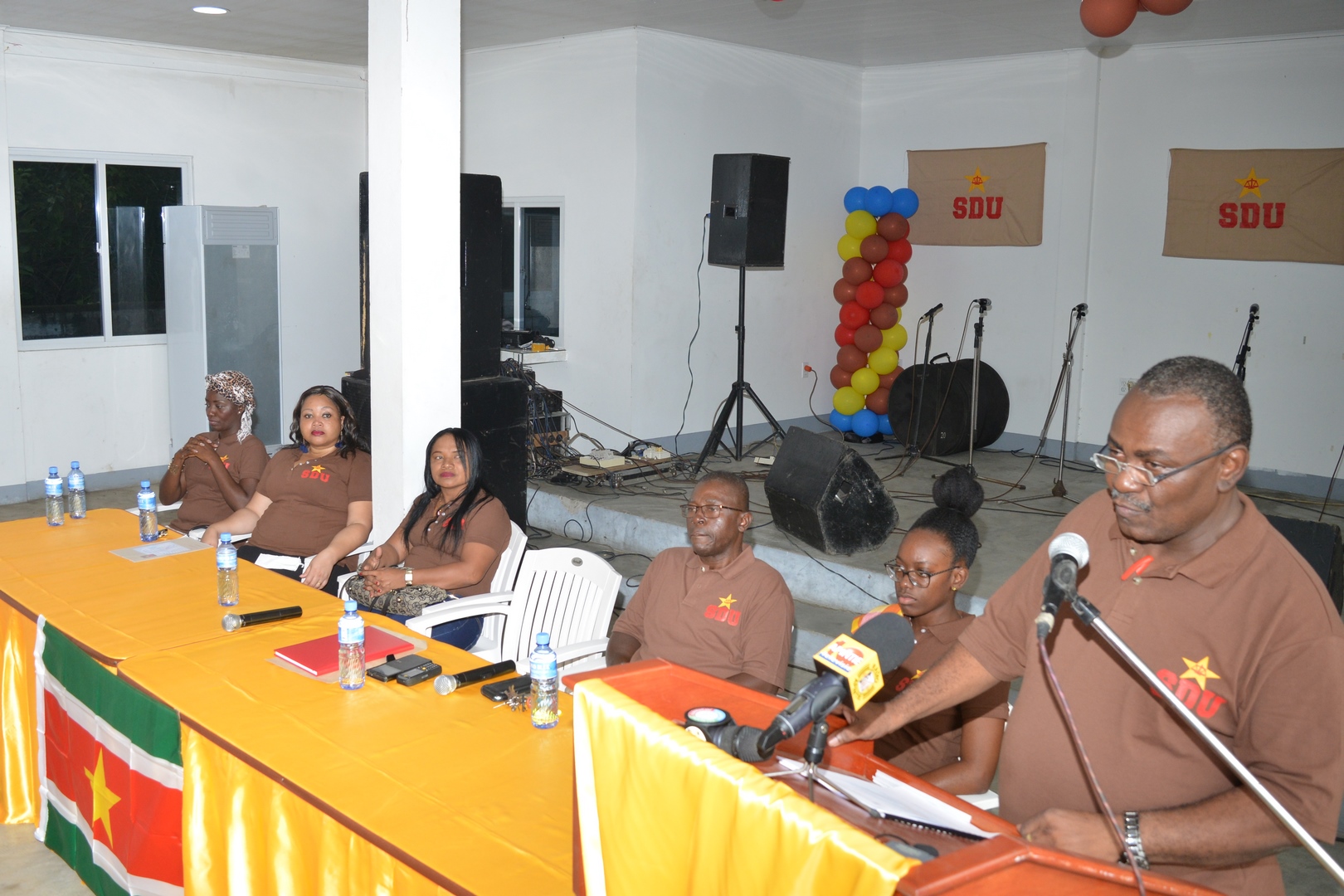 Celsius Waterberg lanceerde vrijdagavond een nieuwe politieke partij. De Sociaal Democratische Unie (SDU) zal zich richten op de kansarmen en de minderbedeelden. Voor deze sociaal zwakkeren, in de Surinaamse volksmond getypeerd als âde mofinawansâ wil Waterberg met zijn voorlopig tienkoppig bestuur het alternatief zijn in de aankomende verkiezingen. Hoewel de andere partijen reeds zijn begonnen met hun verkiezingsvoorbereidingen ziet de SDU-oprichter reĂ«le kansen om zetels te behalen bij de verkiezingen. âWant iedereen begint op 25 mei met nul zetelsâ zei Waterberg. Hij zei dat het aan het volk ligt hoeveel zetels zijn partij krijgt. âBegrijpen ze ons boodschap goed, krijgen we meer zetels.â De voormalige BEP-topper en V7-participant, die later de huidige regering heeft ondersteund, zegt dat het duidelijk moet zijn voor de gemeenschap dat hij geen afsplitsing is van geen enkele andere partij.