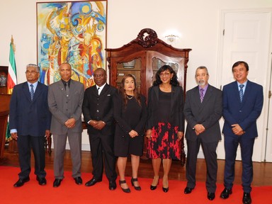 In het presidentieel paleis vond gisteren de beëdiging plaats van Subhas Punwasi, Maureen Dayala, Duncan Nanhoe, Eric Rudge, Clayton Wallerlei, Jimmy Kasdipowidjojo en Lydia Ravenberg tot respectievelijk lid en leden plaatsvervangers van het Hof van Justitie (HvJ). Zij zijn beëdigd door president Desi Bouterse. Alle zeven kersverse rechters worden vrijdag 22 februari tijdens een buitengewone openbare zitting van het HvJ geïnstalleerd. Hiermee wordt de werkdruk op de bestaande 19 rechters verlicht. In totaal beschikt de rechterlijke macht dan over 26 rechters. Het staatshoofd is ervan overtuigd dat deze 7 nieuwe leden een wezenlijke bijdrage zullen leveren aan de snelle, deskundige en onafhankelijke rechtspraak. “Een rechtspraak waarbinnen er slechts plaats is voor gerechtigheid en gebondenheid aan wet, recht en het gehele rechtssysteem”, aldus de president die de nieuwe rechters veel succes toewenste in deze nieuwe taak. Een goed en onafhankelijk functionerende rechterlijke organisatie is volgens Bouterse een garantie voor maatschappelijke stabiliteit en voorts een waarborg voor economische groei en ontwikkeling. Hij had een maand terug nog kritische uitlatingen gedaan richting de zittende en staande magistratuur over de aanpak van het 8 decemberstrafproces.