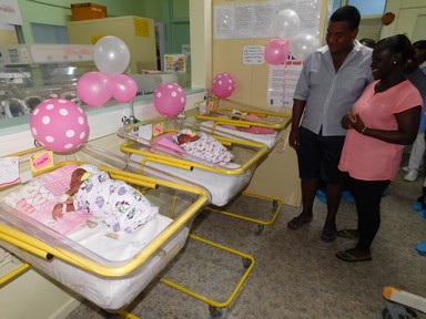 Op donderdag 14 februari 2019 is de eerste drieling voor dit jaar geboren in het ‘s Lands Hospitaal. Gisteren mochten de gelukkige moeder Michella Kayame en de vader Roche Aroepa hun drie prinsesjes, Timaira, Shamayra en Jomaira, naar huis brengen. Na een gezonde zwangerschap van 36 weken + 4 dagen, hebben de meisjes op 14 februari 2019 hun eerste daglicht gezien. Deze Valentijnsdrieling verkeerde in blakende gezondheid en mocht op vrijdag 1 maart naar huis. De ouders hebben reeds een dochter van 4 jaar, genaamd Catalina, die vol ongeduld zit te wachten om eindelijk haar 3 zusjes vast te mogen houden.