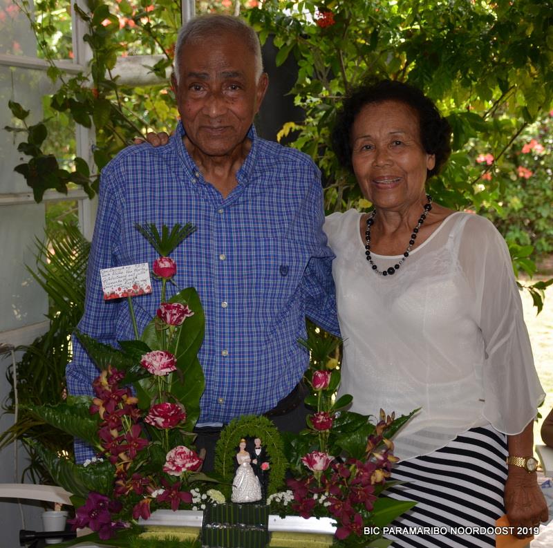 Het echtpaar Deryck Ferrier – Carmen Tjon-A-Joe vierde gisteren het diamanten huwelijk (60 jaar). Districtscommissaris Mike Nerkust heeft een bezoek gebracht aan het jubilerend echtpaar. De echtelieden hebben uit handen van de dc de gebruikelijke enveloppe met inhoud in ontvangst genomen.