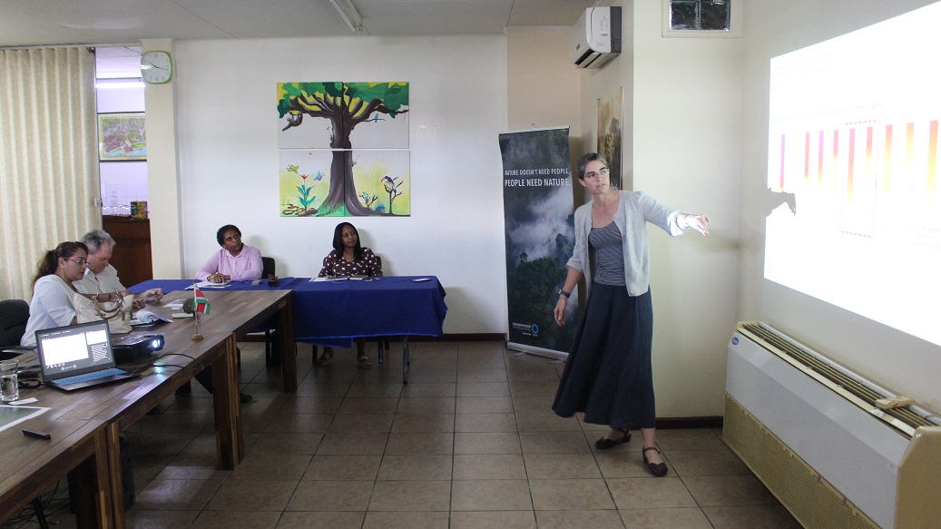 De Conservation International (CI) hield donderdag een presentatie over ‘green-grey’ infrastructuur. Emily Corwin uit Californië ging speciaal voor deze gelegenheid in op de voordelen van deze methode, die vooral in het belang is van het behoud van de natuurlijke zeewering, zoals de mangroves. Het doel is om ook inzicht te helpen geven in de constructie van complexe (dijk) ontwerpen. In de afgelopen jaren is de kwetsbaarheid voor klimaatverandering steeds groter geworden. Ook in Suriname heeft de stijging van 10-15 cm van de zeespiegel voor veel overstromingen gezorgd. De mensen van Weg naar Zee kunnen zich dat nog maar al te goed herinneren.