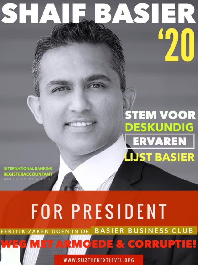 ‘Shaif Basier for President.’ Dit opschrift pronkt onder andere in het centrum en op diverse gebouwen/supermarkten langs de Indira Gandhiweg. De nieuwkomer Shaif Basier, die opereert onder de politieke partij Lijst Basier, heeft pas zijn intrede gedaan in de Surinaamse politiek en heeft het meteen gemikt op de hoogste functie van het land: president. Tijdens de discussieavond van Kenniskring op 2 april 2019 spotte hij met de ‘dieren’ van de Surinaamse politiek. Basier is van mening dat er ‘Basierficatie’ van de economie vereist is, waaraan alleen Lijst Basier invulling kan geven. Hoe ervaart de NDP deze nieuwe en enthousiaste concurrent?