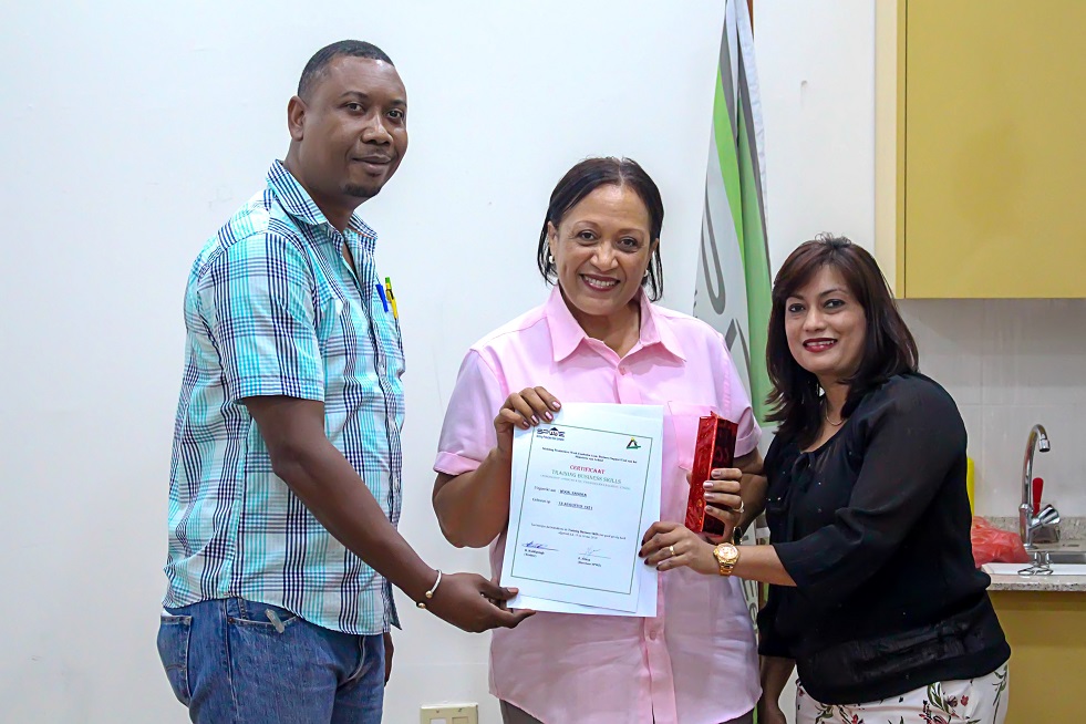Het ministerie van Arbeid sloot donderdag een tweedaagse cursus succesvol af. In samenwerking met de Stichting Productieve Werkeenheden (SPWE), een werkarm van het ministerie, werd de training in softskills afgerond. Na een periode van ongeveer twee jaren minder actief te zijn geweest, reikte de SPWE het honderdste certificaat uit. De SPWE richt zich weer volop op het bevorderen en stimuleren van onder meer het klein ondernemerschap. Dit zal uiteindelijk moeten resulteren in werkgelegenheid. Cursisten werden getraind in ‘Communicatie en Leiderschap’ en ‘Verandermanagement en Ethiek’. Tot december staat deze training gepland.