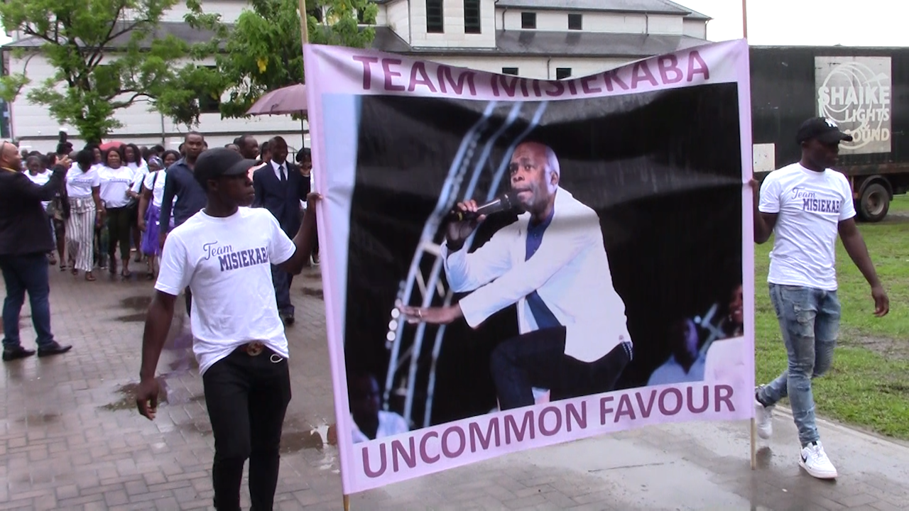 De regen drukte de pret van president Desi Bouterse en zijn gevolg niet. Dansend met de brassband begeleidt een groep aanhangers André Misiekaba naar het podium, alwaar hij de hamer moet overnemen op het ministerie van Sociale Zaken en Volkshuisvesting. Er is veel aandacht gevestigd om Misiekaba (Sozavo), Rabin Parmessar (LVV), Sergio Akiemboto (NH) en Vijay Chotkan (OWT&C), onder aanwezigheid van honderden partijaanhangers, te beëdigen tot minister. Hiermee moet het voltallig kabinet van het staatshoofd hard aan de slag gaan om een kans te maken op een derde termijn voor de Nationale Democratische Partij (NDP). Lekhram Soerdjan schuift naar Ruimtelijke Ordening, Grond- en Bosbeheer (RGB). Bouterse sprak over een noodzaak om zijn kabinet nu voor de zoveelste keer te herschikken. “Om de geformuleerde nationale, regionale en lokale ontwikkelingsdoelen zichtbaar en bereikbaar te houden, passen wij ons bestuur aan”, benadrukte de president in zijn toespraak. Hij bedankte de gewezen ministers, Patrick Pengel, Cristien Polak, Regilio Dodson en Roline Samsoedien, voor hun bijdrage. Parmessar en Soerdjan zijn niet nieuw in het kabinet Bouterse. Eerder was Parmessar minister van Openbare Werken (OW), terwijl Soerdjan tot voor kort nog voor LVV verantwoordelijk was. Voor zijn laatste functie als directeur Luchthavenbeheer, was Chotkan directeur Bouwkundige Werken op het ministerie van OW.