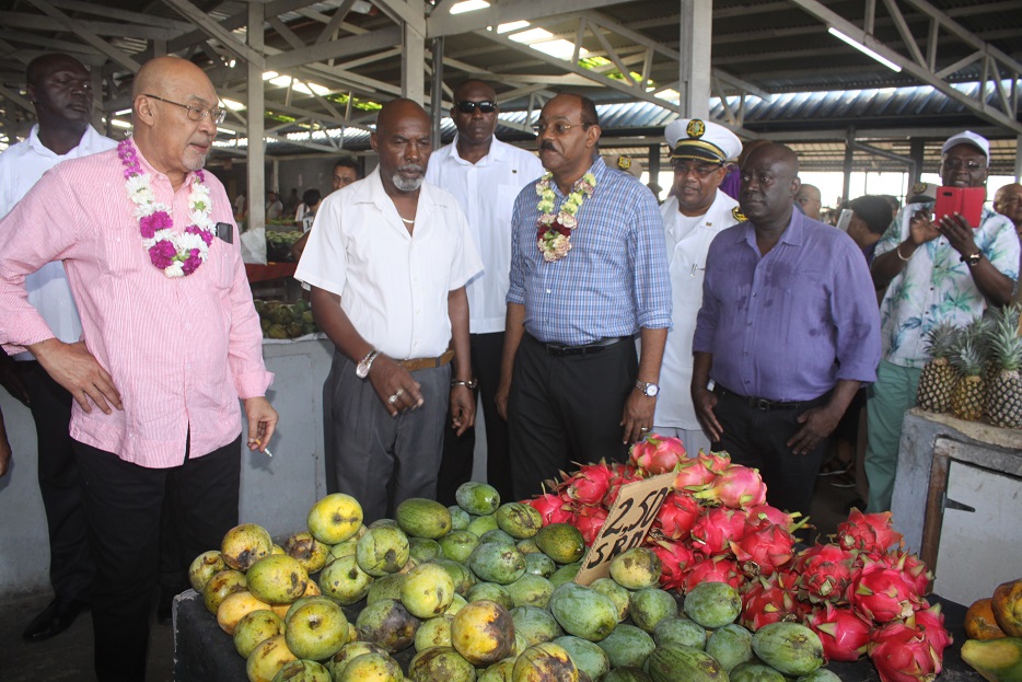 1Centrale markt vereerd met hoog bezoekOp woensdag 29 mei 2019 kreeg de Centrale Markt hoog bezoek van de minister-president van Antigua en Barbuda, Gaston Browne, en de president van de Republiek Suriname, Desiré Delano Bouterse. Gaston Browne, die een officieel bezoek aan Suriname bracht op dinsdag 29 mei, had een aantal veldbezoeken op zijn schema staan, waaronder de Centrale Markt in de stad als eerste bezoekplek was uitgestippeld. Met extra beveiliging van het Korps Politie Suriname hebben Bouterse en Browne een rondleiding van de marktmeester John Lecton gekregen. Tijdens het bezoek van Gaston Browne onder de markt, heeft hij kunnen ervaren wat de Centrale Markt van Suriname te bieden heeft. Hij was heel enthousiast en gaf aan dat de markt heel groot en uitgebreid is. De minister-president van Antigua en Barbuda heeft ook kunnen meemaken hoe de samenwerking is tussen de verschillende bevolkingsgroepen in Suriname, gaf Lecton tijdens zijn toespraak aan. Tijdens dit hoog bezoek waren ook andere hoogwaardigheidsbekleders aanwezig, onder meer ministers en districtscommissarissen. Na het bezoek op de Centrale Markt vertrok de delegatie naar Farmer Field in het district Wanica. Daarna werd er een persmoment gehouden te Colakreek in het district Para.