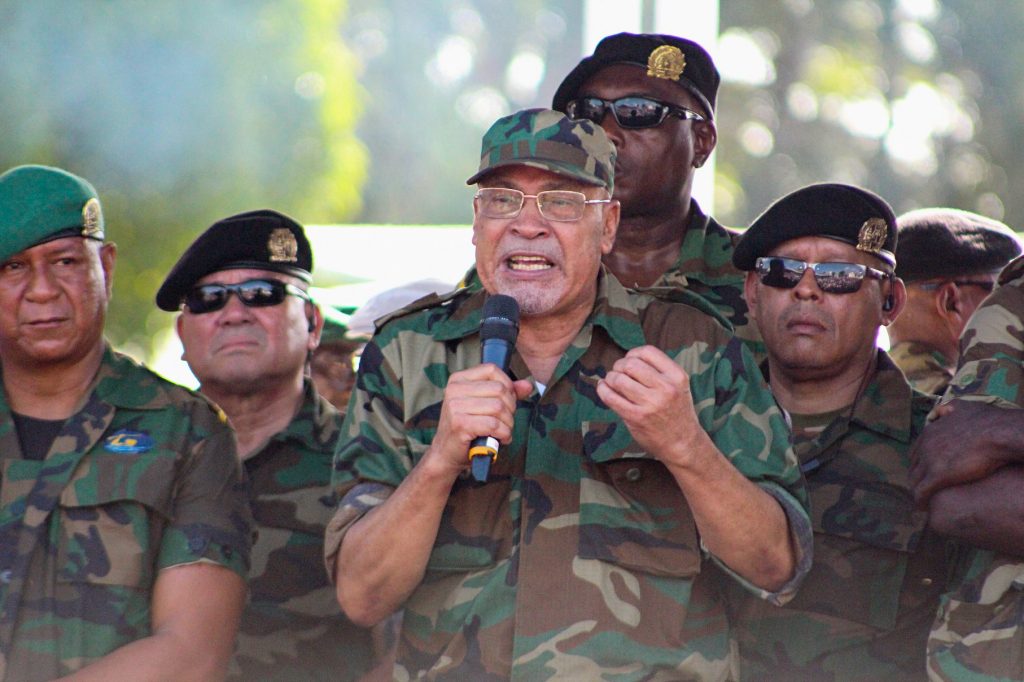 De bij verstek veroordeelde Desi Bouterse in het 8-decemberstrafproces zei gisteren na de zitting van de krijgsraad op het Onafhankelijkheidsplein tegen partijgenoten dat Nederland er alles aan probeert te doen om hem niet meer gekozen te laten worden tot president. Volgens het staatshoofd is het triest wat met de 15 mannen is gebeurd op 8 december 1982, maar benadrukte tegelijk dat er in oorlogstijd ook incidenten plaatsvinden. “In oorlog gebeuren er incidenten. En wij weten dat dit een incident is”, aldus Bouterse tegenover enkele duizenden NDP’ers. Het staatshoofd bedankte de aanwezige personen voor de moeite die zij getoond hebben om lijfelijk aanwezig te zijn en hem om deze moeilijke dag te ondersteunen. Hij wil dat deze 8 decemberkwestie, die hem al jaren achtervolgt, voor eens en altijd tot een einde brengen. weliswaar met een uitspraak in zijn voordeel.