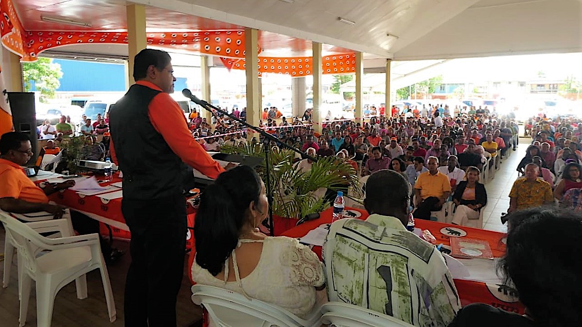 Het congres keurde unaniem de financiĂ«le verslagen van het afgelopen jaar goed. Ook nam het congres het verkiezingsprogramma 2020 -2025 met algemene stemmen aan. Evenals de grondbeginselen en ideologie van de VHP. Deze laatste twee documenten zijn via de website van de VHP (www.vhp.sr) te downloaden. Ze waren al aangeboden op de verjaardag van de VHP op 18 januari.Santokhi: âWe gaan weer het veld in. We gaan winnen, Oen wini!â. Foto: VHP