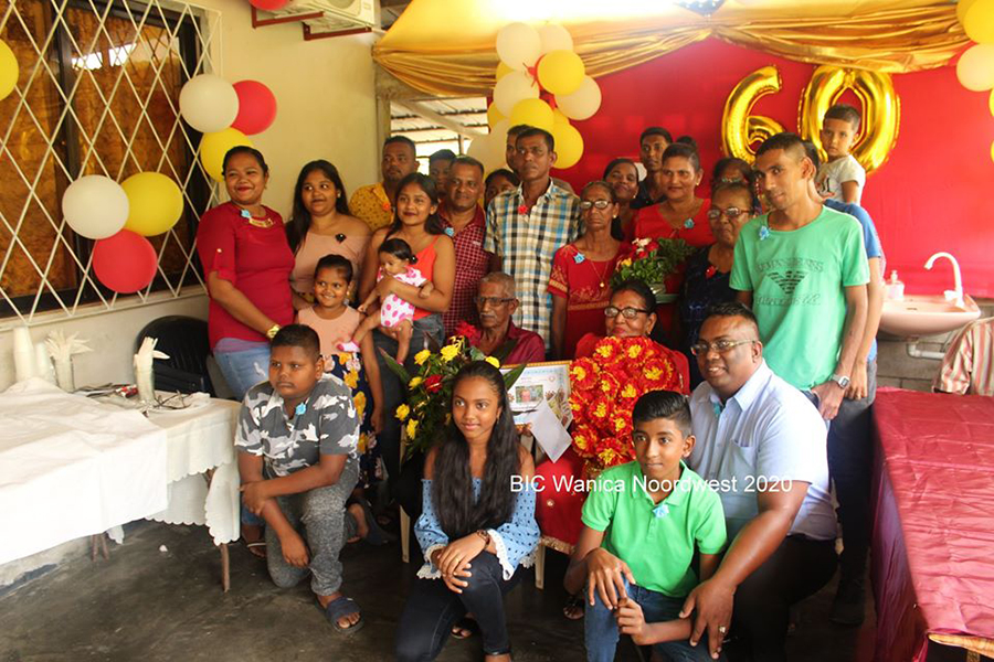 Districtscommissaris Wedprekash Joeloemsingh heeft op zaterdag 1 februari het echtpaar Rampersad Nanhoe en Roekmanie Soekhnandan gehuldigd voor het feit dat zij zestig jaar zijn getrouwd. De burgervader bracht de felicitaties over aan het echtpaar, dat bijzonder blij was met deze erkenning. Nanhoe zag het levenslicht op 14 november 1940 in het district Suriname en heeft gewoond te Leiding 2. Hij komt uit een gezin van 14 kinderen, waarvan hij de 3de is (8 dochters en 6 zonen). Hij heeft de GLO tot de 6de klas te Leiding 11 bezocht. In zijn schoolperiode bezocht hij ook de Hindischool en Landbouwschool. Na de school te hebben verlaten, heeft hij 4 maanden lang kleermaker les gevolgd op de hoek van Wanicastraat/Gravenstraat (nu bekend als Johan Adolf Pengel straat en Henck Aronstraat).