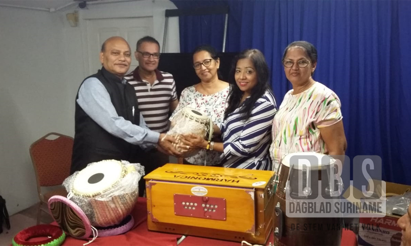 Sharad Kumar, directeur van het Indiase Swami Vivekananda Culture Center, SVCC en de tweede secretaris van de Indiase Ambassade Pankaj Sharma hebben de afgelopen dagen wederom muziekinstrumenten gedoneerd. Eerst kwamen twee muziekscholen in Nickerie in aanmerking, daarna kregen de Ganesh Mandir te Doekhie project, de SSDP te Blauwgrond, de mandirs te Houttuin en Indirah Gandhi weg en stg. OHM ook instrumenten aangeboden. Vrijdag 14 februari kregen de Govind mandir aan de Nandoe weg en de Shri Krishna mandir derde rijweg ook een bezoek van de SVCC en OHM waarbij een Harmonium, een Dholak, djhaals en dandtal werden overhandigd.
