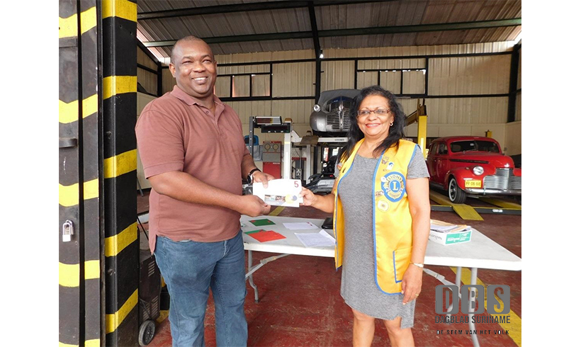 Commissievoorzitter Jane Simons Turney van Lions Club Paramaribo East heeft op zaterdag 22 februari jongstleden de prijzen van de Valentineās Goederenloterij overhandigd aan de winnaars van deze fundraisingsactiviteit. Op de foto het moment waarop Brayen Jurgens, winnaar van een ontbijt voor 2 personen in Hotel Marriot, zijn prijs in ontvangst neemt. De opbrengst van de loterij zal in het voordeel van de samenleving besteed worden aan sociale projecten. De uitreiking van de 9 prijzen, met als hoofdprijs 2 retourvliegtickets Paramaribo- CuraƧao, vond plaats binnen de bedrijfsruimte van JST Carcenter/Keuringsstation op de hoek van de Mozart- en Max Woiskistraat. Simons was vol lof over de goede wil van deelnemers aan de goederenloterij en de sponsoren.