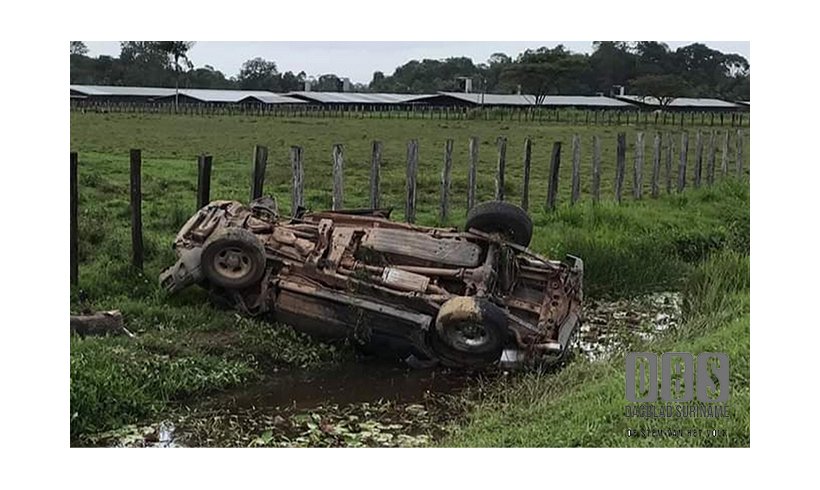 De politie van Para kreeg maandagmiddag een melding van een verkeersongeval aan de Indira Gandhiweg, waarbij de bestuurder ter plekke het leven heeft gelaten. Twee inzittenden zijn per ontboden ambulance vervoerd naar de Spoedeisende Hulp. Uit het onderzoek blijkt dat het voertuig met een Franse kentekenplaat reed. Het vermoeden bestaat dat de personen van Frans-Guyana afkomstig zijn. Het is niet bekend hoe de bestuurder de controle over de besturing van zijn voertuig heeft verloren. Het voertuig is van de weg geraakt en in de trens over de kop gegaan. Gezien de situatie blijkt dat de auto vanuit Zanderij richting Lelydorp reed. De politie heeft de juiste personalia nog niet. Er zijn wel documenten in de auto gevonden op naam van ene A.R. Met het heengaan van dit slachtoffer is de verkeersbarometer gestegen naar 10. Het onderzoek duurt voort.