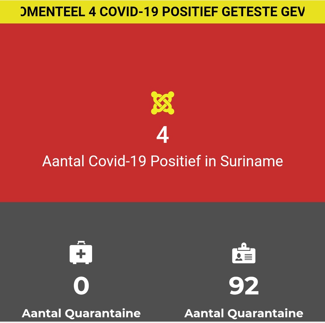 In totaal zijn er nu dus VIER bevestigde positieve gevallen in ons land. De situatie is zorgwekkend, en Dagblad Suriname blijft u up to date houden. Wij wensen onze landgenoten kracht en wijsheid toe in deze moeilijke tijden.