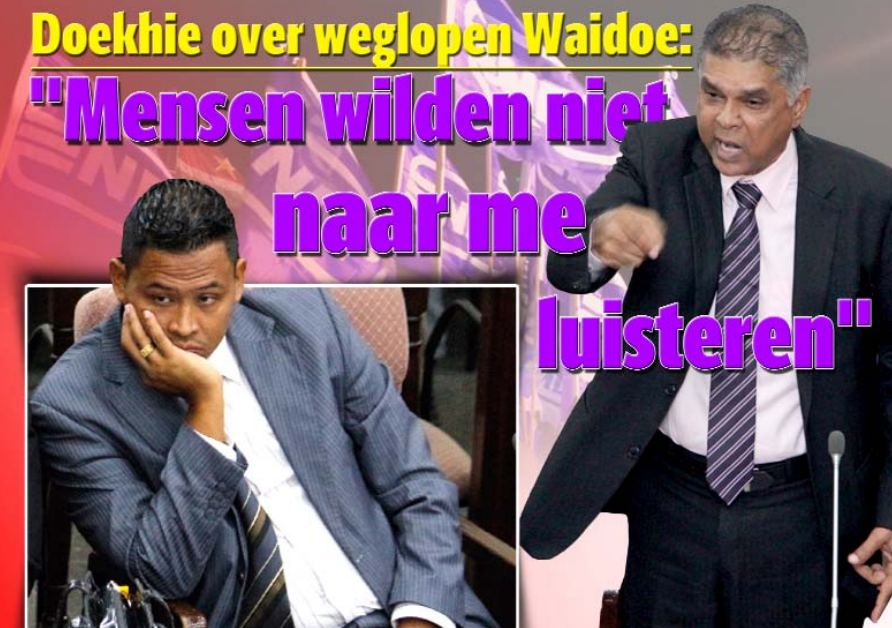 Volgens informatie eiste Waidoe van de NDP-coördinatie in het rijstdistrict dat hij een op een verkiesbare plek, namelijk nummer 1 of 2, moest komen van de DNA-kandidatenlijst, waardoor hij een groter kans zou maken op een tweede termijn in de DNA. Nu blijkt dat Waidoe genoegen zal moeten nemen met nummer 3 of 4. Deze ontevredenheid zou Waidoe dan op de vergadering van vrijdag hebben laten zien door weg te lopen. Waidoe kreeg 3038 stemmen in 2015. Volgens Doekhie zijn dat stemmen van niet Waidoe, maar de Pertjajah Luhur. Doekhie blijft erbij dat Waidoe zijn kracht in Nickerie nog moet tonen, want hij heeft nog niet veel mensen op eigen kracht op de been kunnen brengen. Naar zeggen van de NDP’er heeft Waidoe nauwelijks 50 personen achter zich. “Het is vreemd. Dit gedrag van Waidoe is overal zo geweest. De 4 tot 5 partijen die hij heeft doorlopen, hebben hetzelfde meegemaakt met hem”, aldus Doekhie.