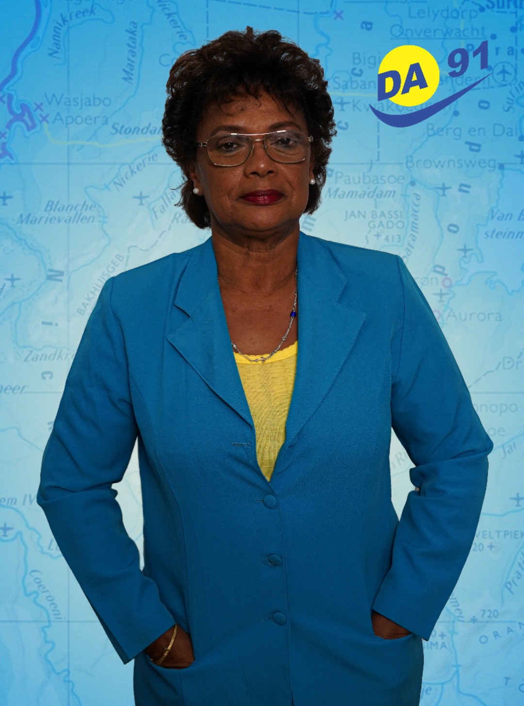iK maak me sterk voor de werkende klasse en vooral de vrouwelijke werknemers. Binnen de routekaart van DAā91 zie je dat de mens ook centraal straat. We gaan voor een sterk en gezond gezin. Wij gaan voor duurzame en rechtvaardige besluitvorming. De vrouw verdient een plek gelijkwaardig aan de man als het gaat om besluitvormende posities. De nieuwe uitdaging die nu voor ons ligt als het gaat om de gezondheidszorg met name nu het Covid-19 virus, vraagt dat wij gezamenlijk met man en macht werken aan een gezonde en duurzame oplossing. Teneinde de economische malaise waarin wij als land nu verkeren het hoofd te bieden, zullen wij als DAā91 samen met u het volk, de nodige soms harde maatregelen moeten treffen. De leiding van het land zal voor moeten gaan in het brengen van offers.