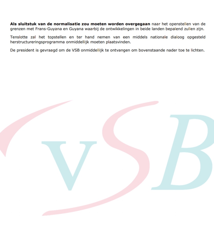 In een schrijven aan president Desi Bouterse heeft de Vereniging Surinaams Bedrijfsleven in een Nationaal Plan een voorstel gepresenteerd ter normalisatie en herstel van de situatie in verband met Covid-19, en verzocht door hem onmiddellijk ontvangen te worden ter toelichting en bespreking.